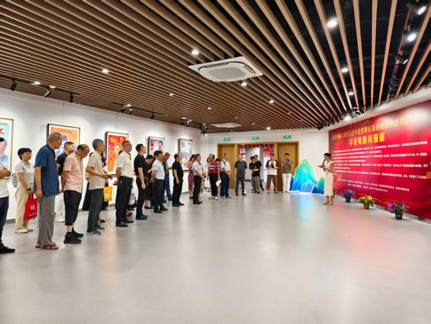 7月16日下午,紀念中國人民抗日戰爭暨世界反法西斯戰爭勝利80周年手繪電影海報展在余姚市文化館臨展廳開幕。余姚市委宣傳部、市委黨史研究室、市文廣旅體局、市社科聯、市文聯等單位有關負責人參加活動。